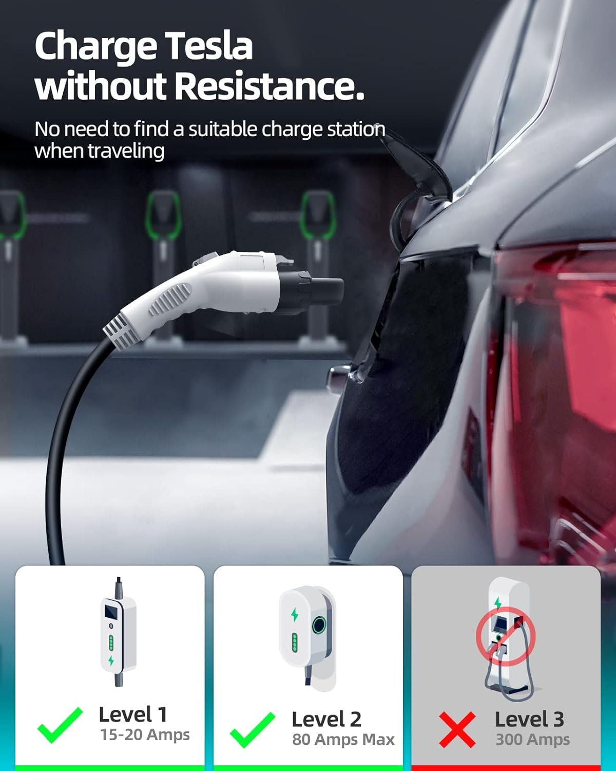 • Plug and Play: Simply connect your SAE J1772 charger to the adapter and start charging your Tesla vehicle with ease.