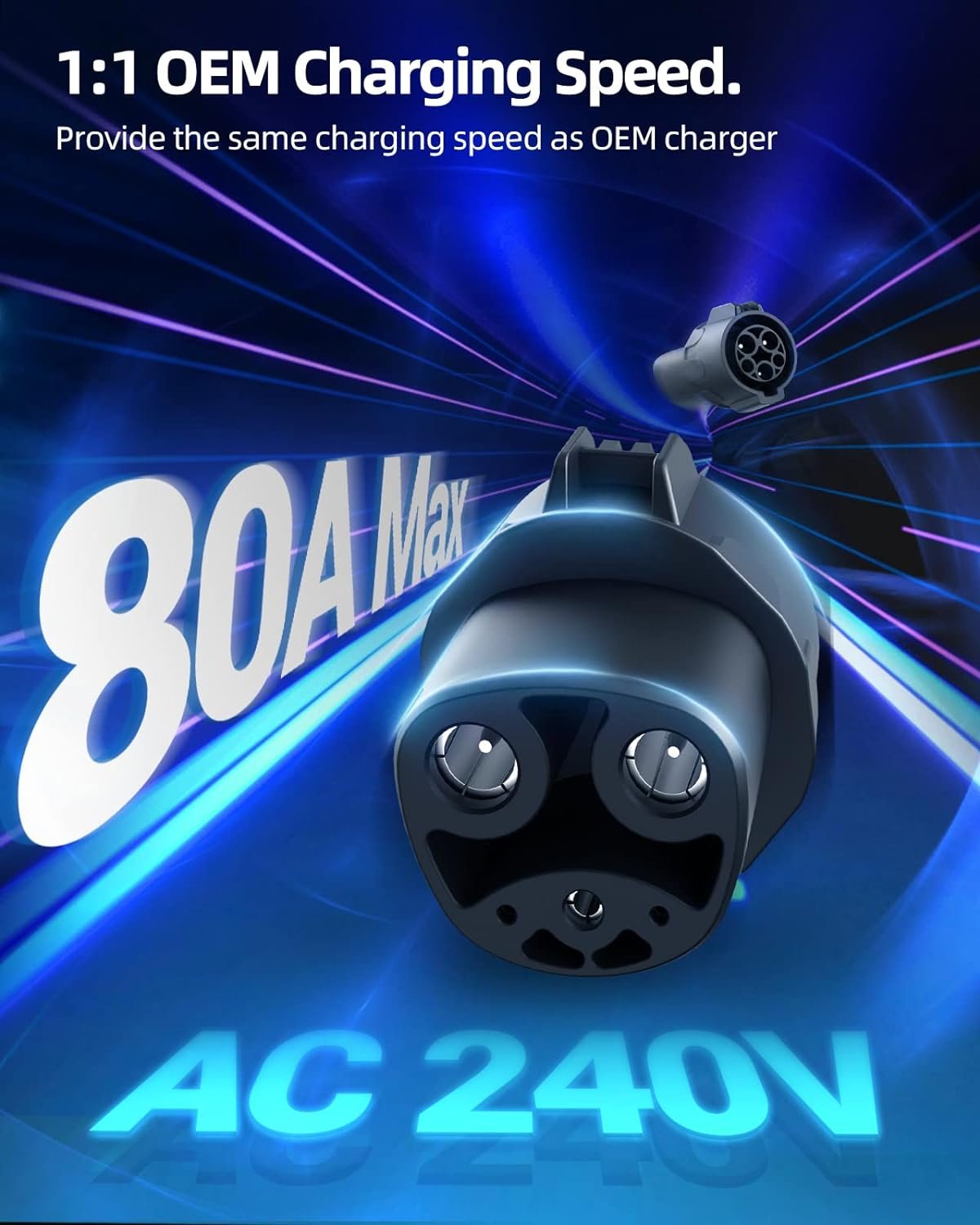 • Fast Charging: Engineered to support up to 60 amps, this adapter ensures stable operation across 110V-240V power inputs. Leveraging 2-stage AC charging, it delivers swifter and more efficient charging, providing an enhanced charging experience.
